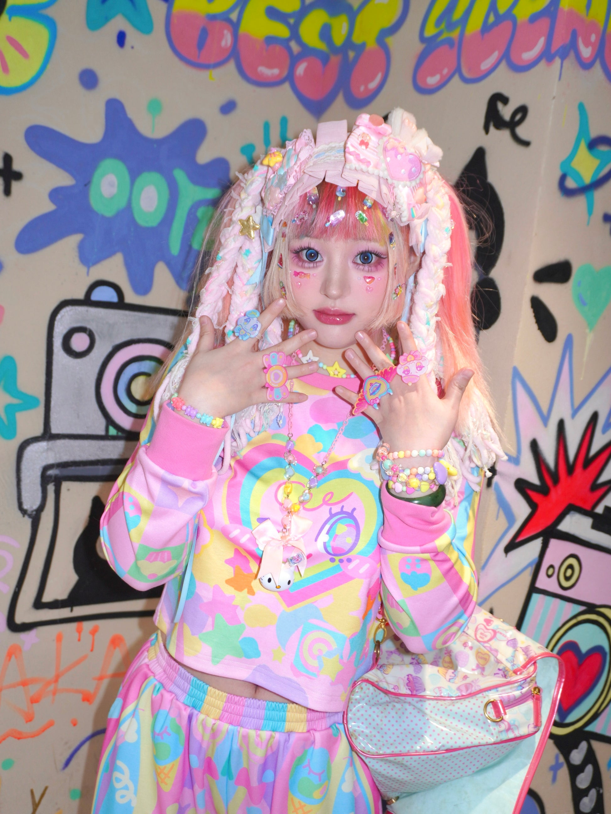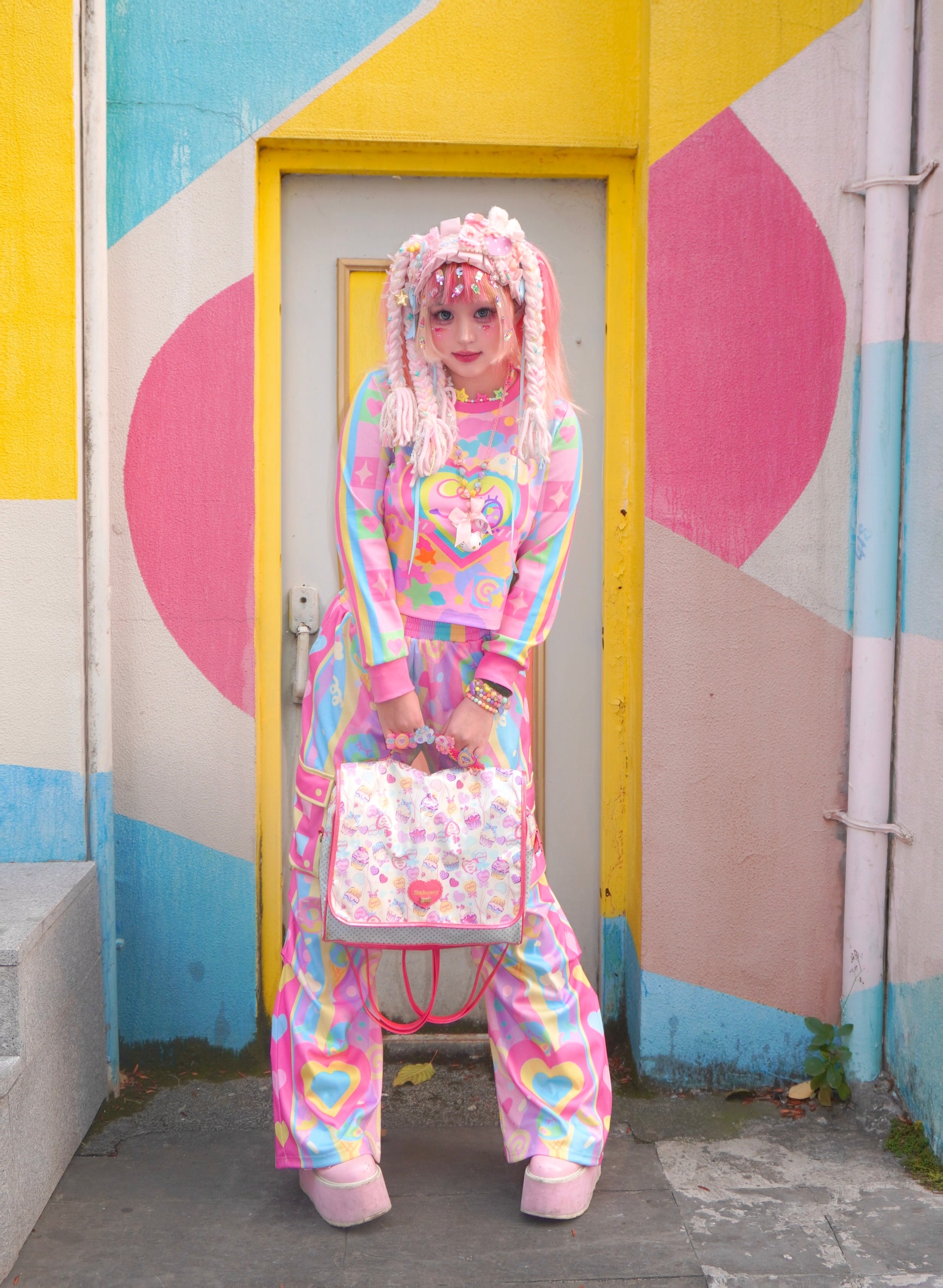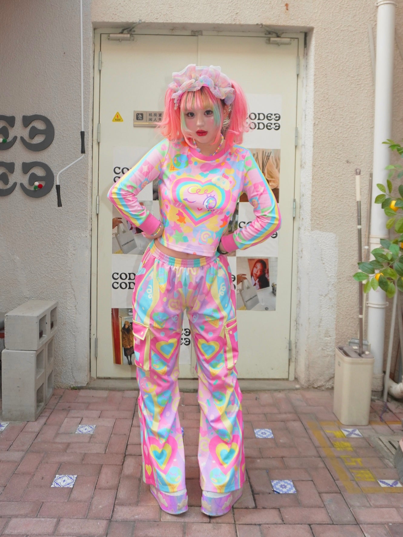 Sweet Pink Heart!!! Kawai POP Sportwear suit Street hip-hop style