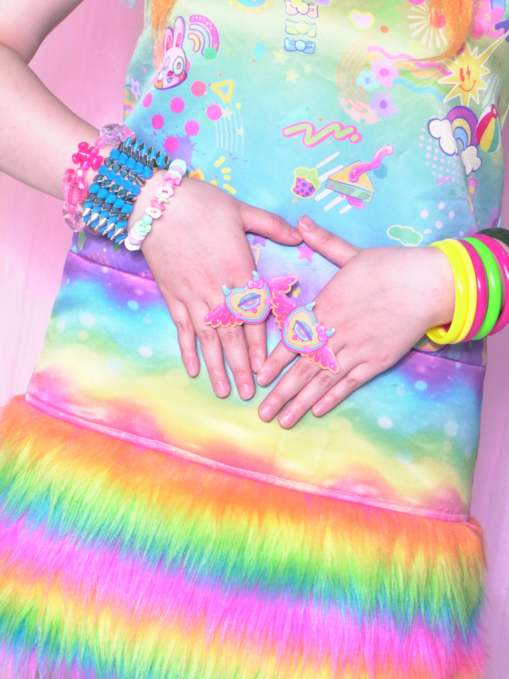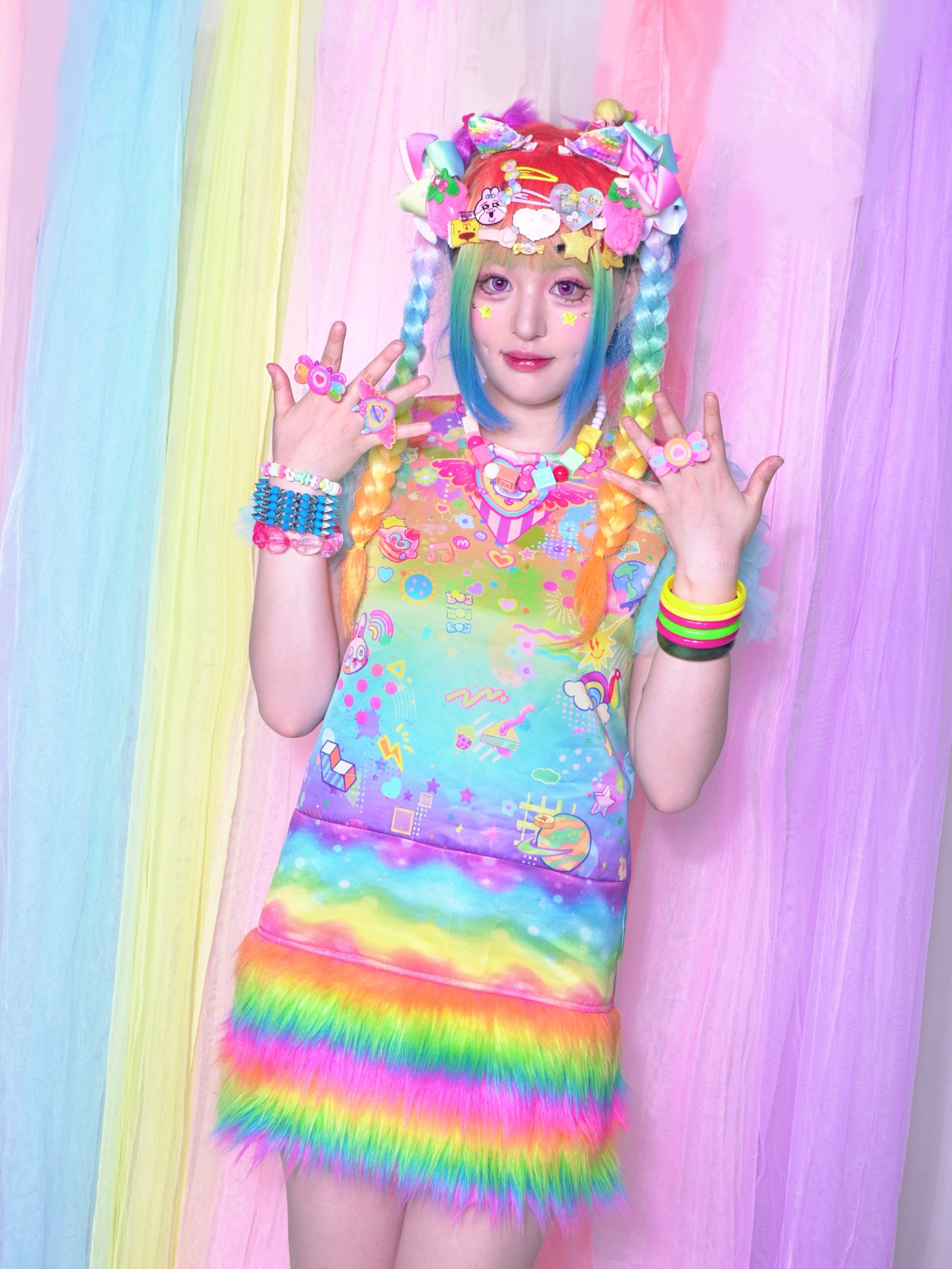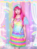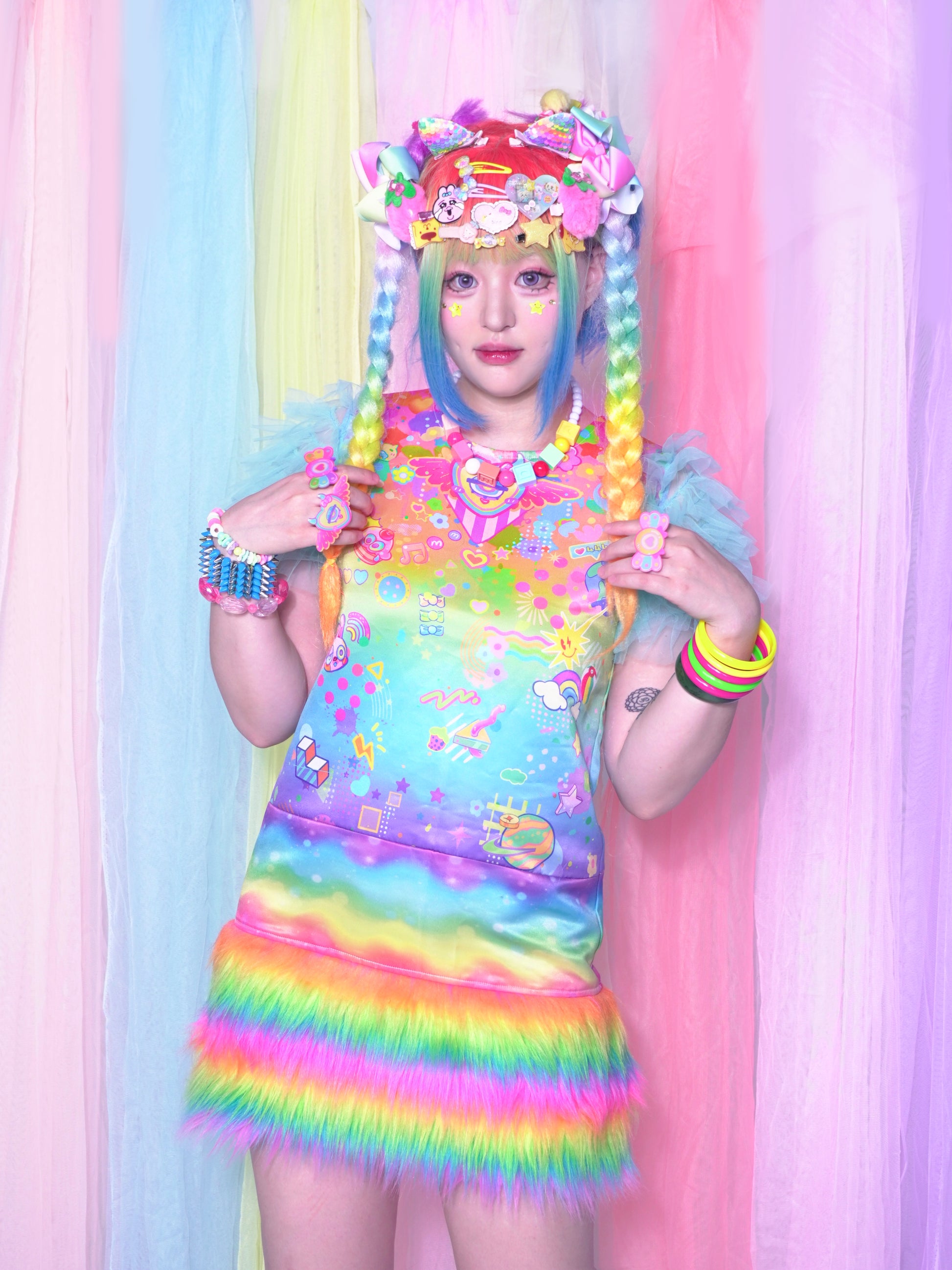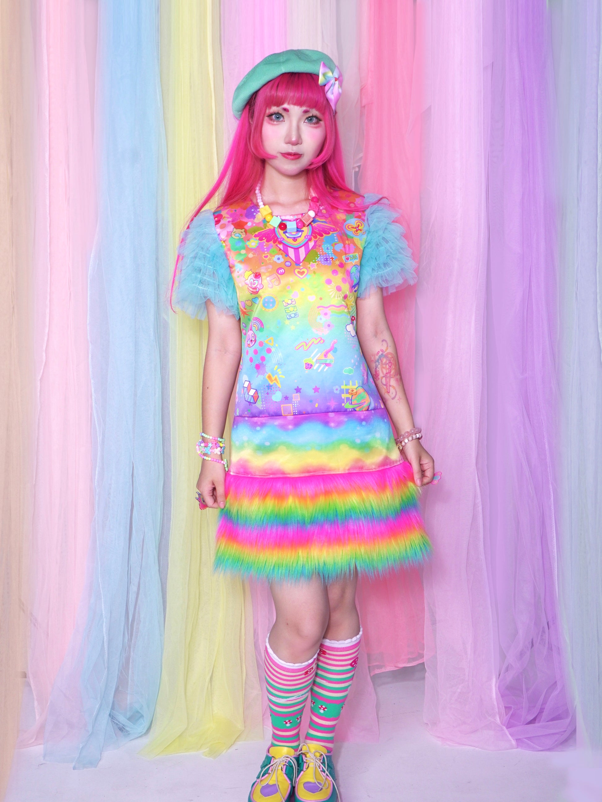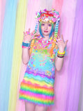 Dream Bubble Rainbow Romantic Dress Tulle Cake Sleeves Colorful Furry Skirt