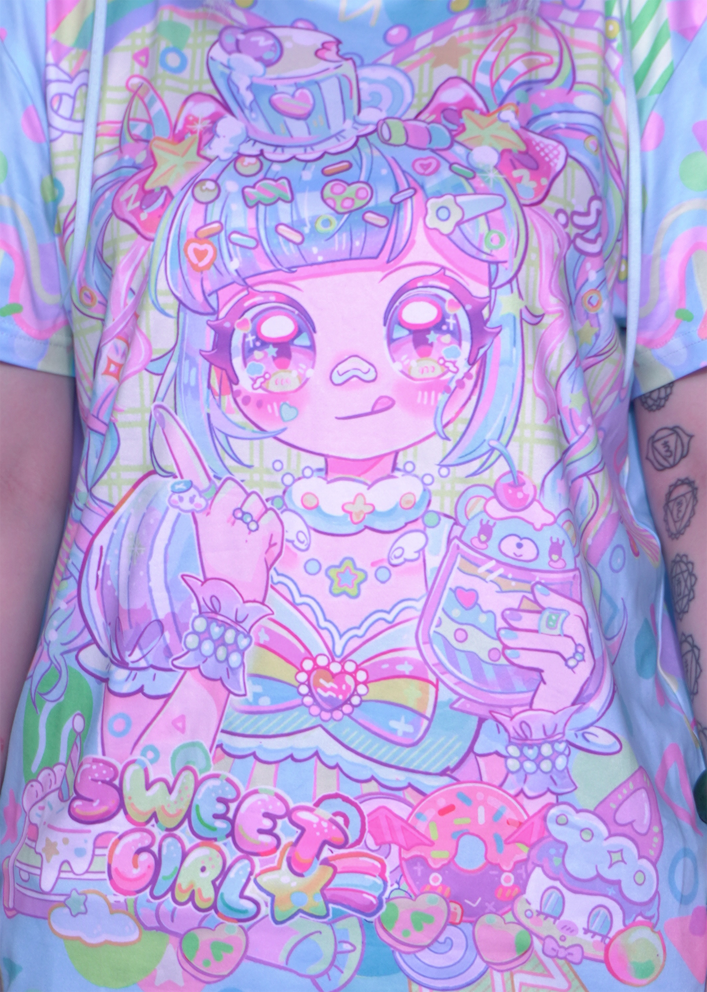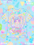 Harajuku kawai decora blue Sweet Candy Girl decora full-print T-shirt
